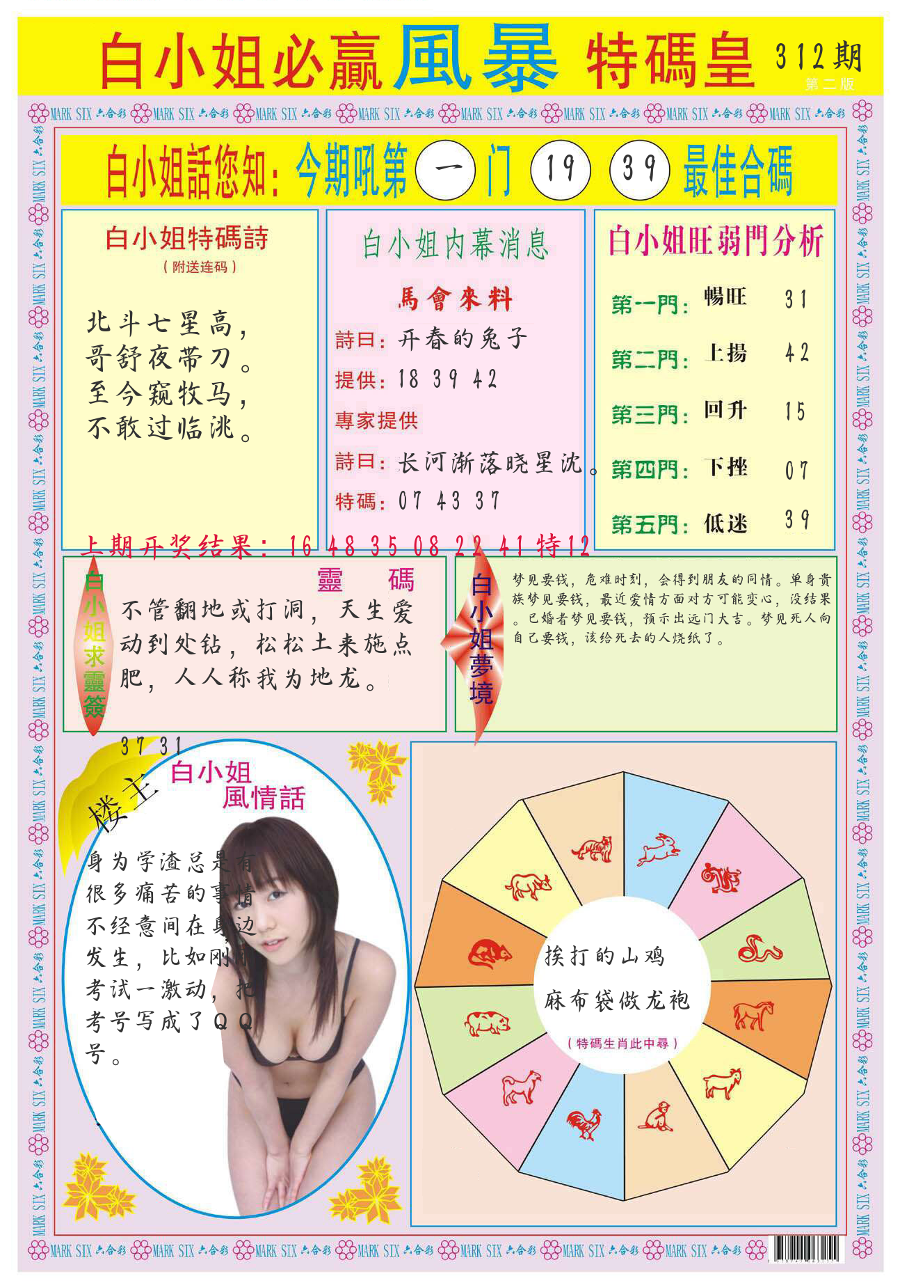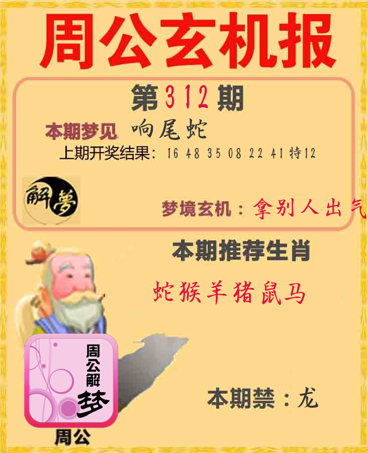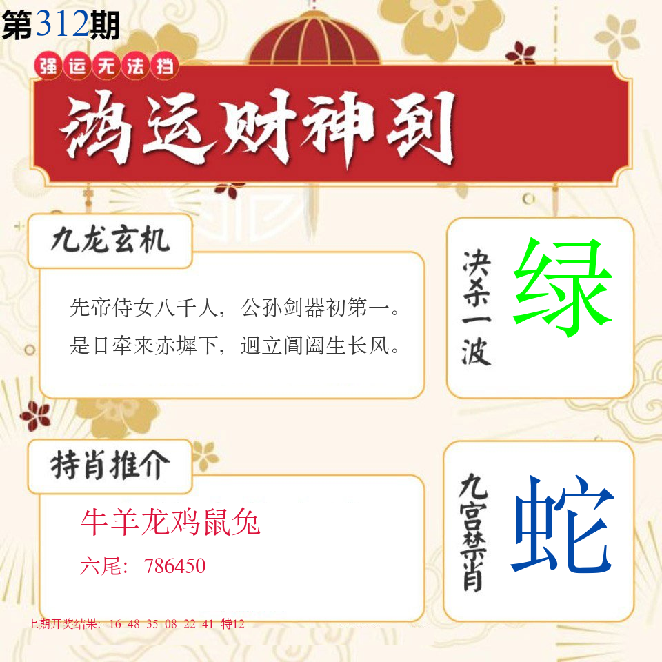 | 312期 | 蛇猪羊牛鸡兔龙 | ????? |