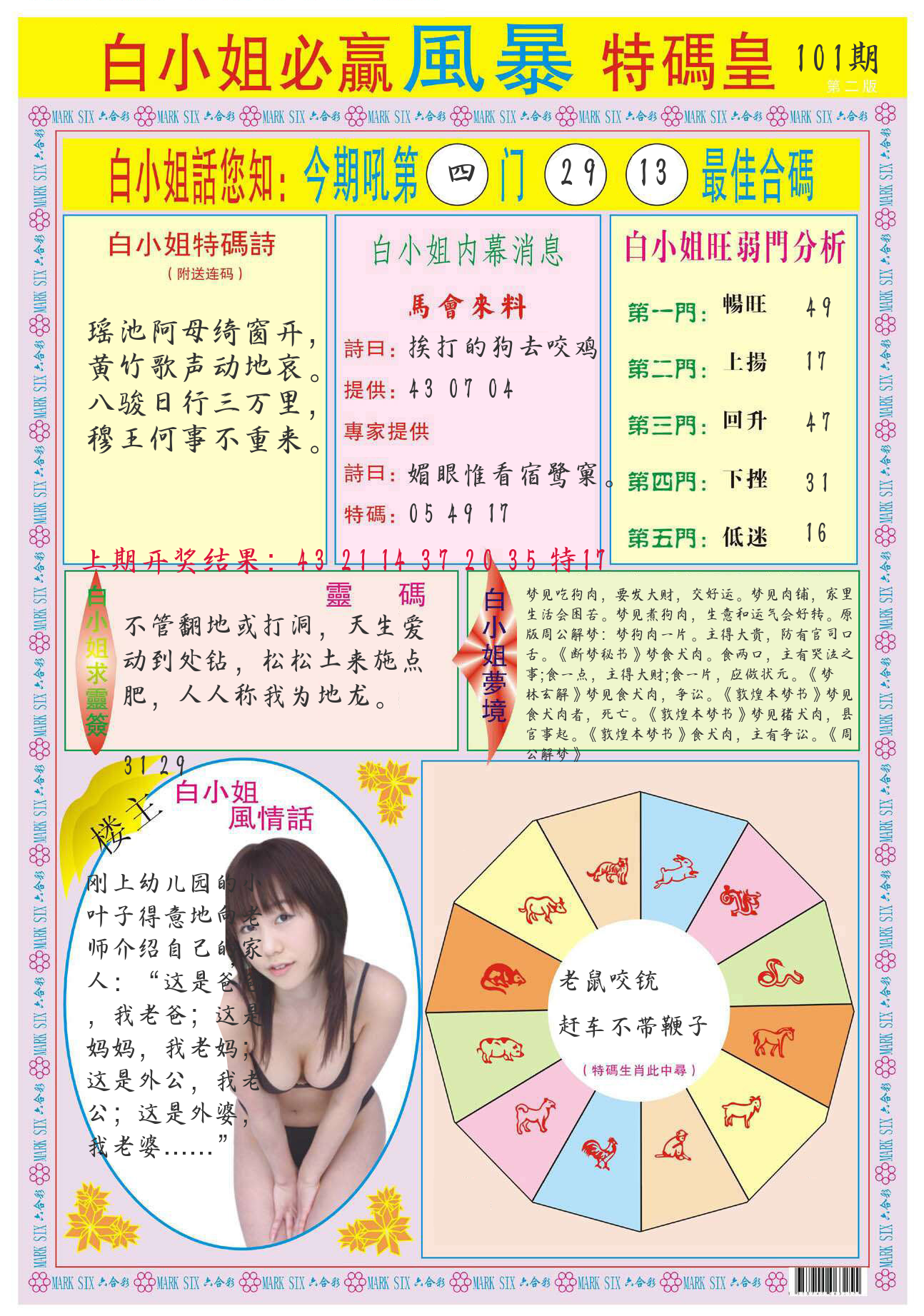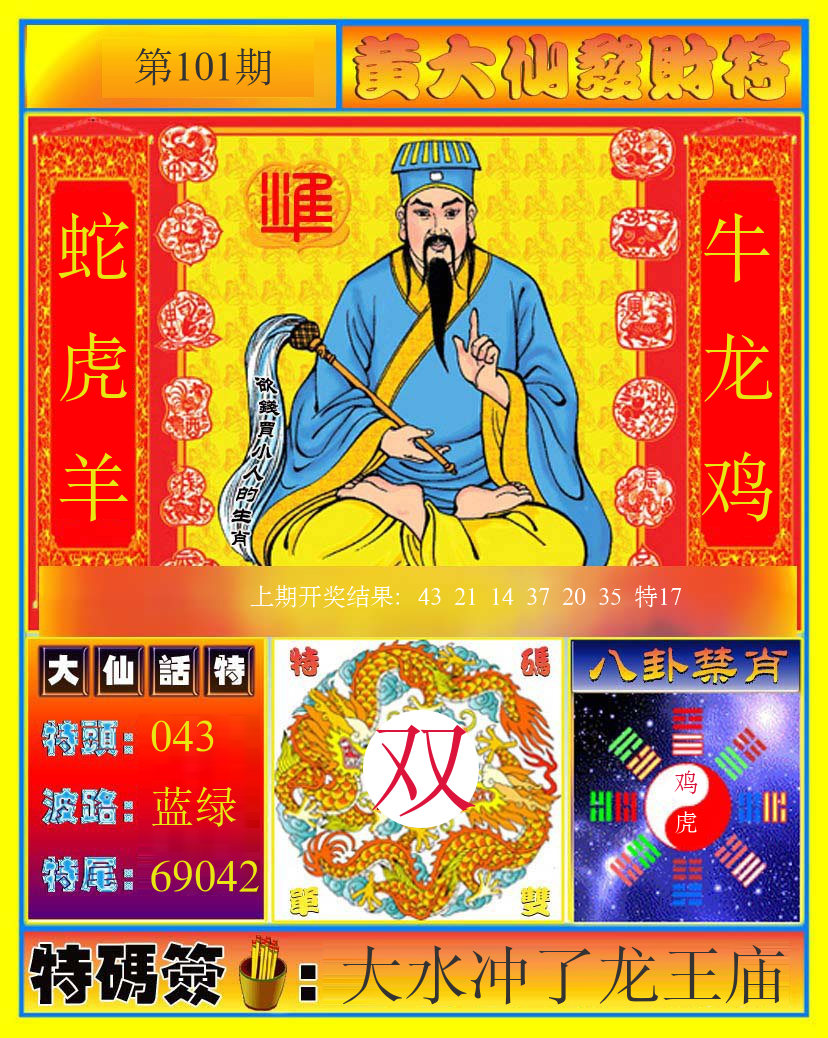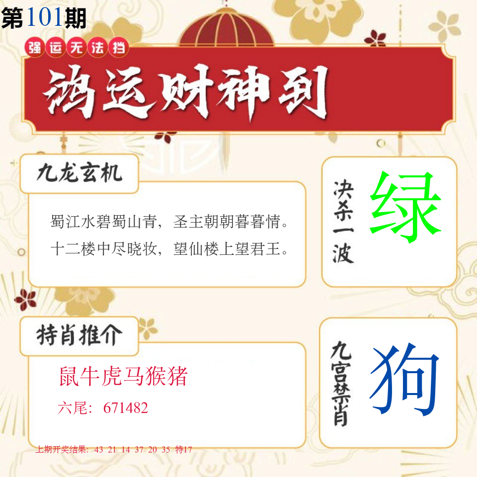 | 101期 | 蛇狗鼠猪兔猴鸡 | 21狗 |