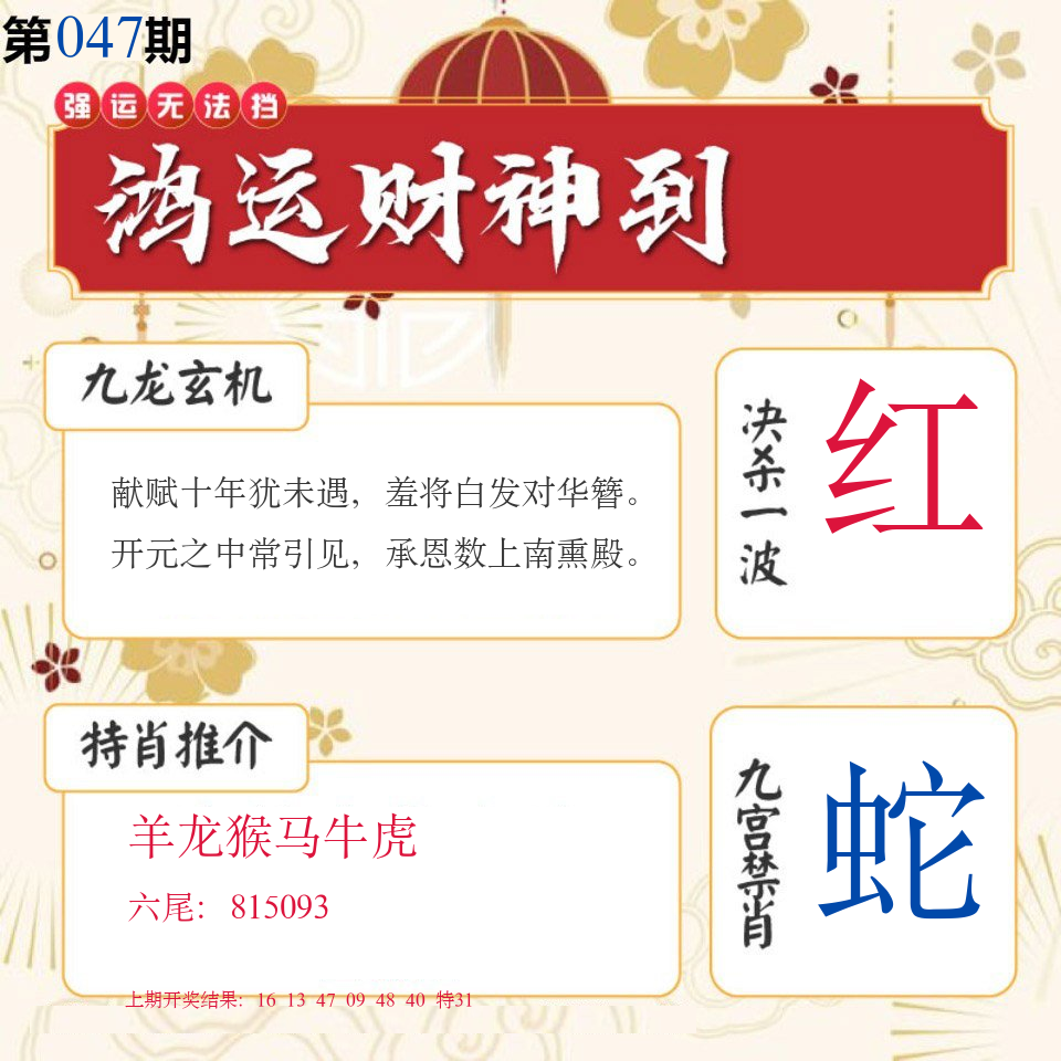 | 046期 | 蛇兔虎猴羊鼠鸡 | 31猪 |
