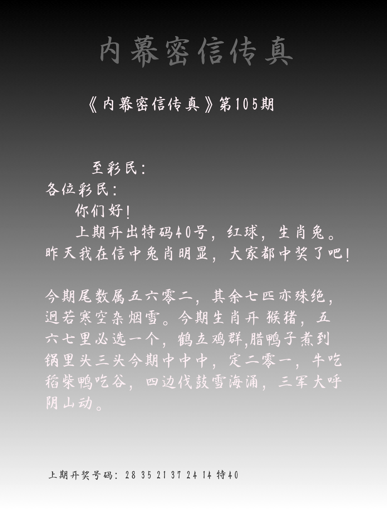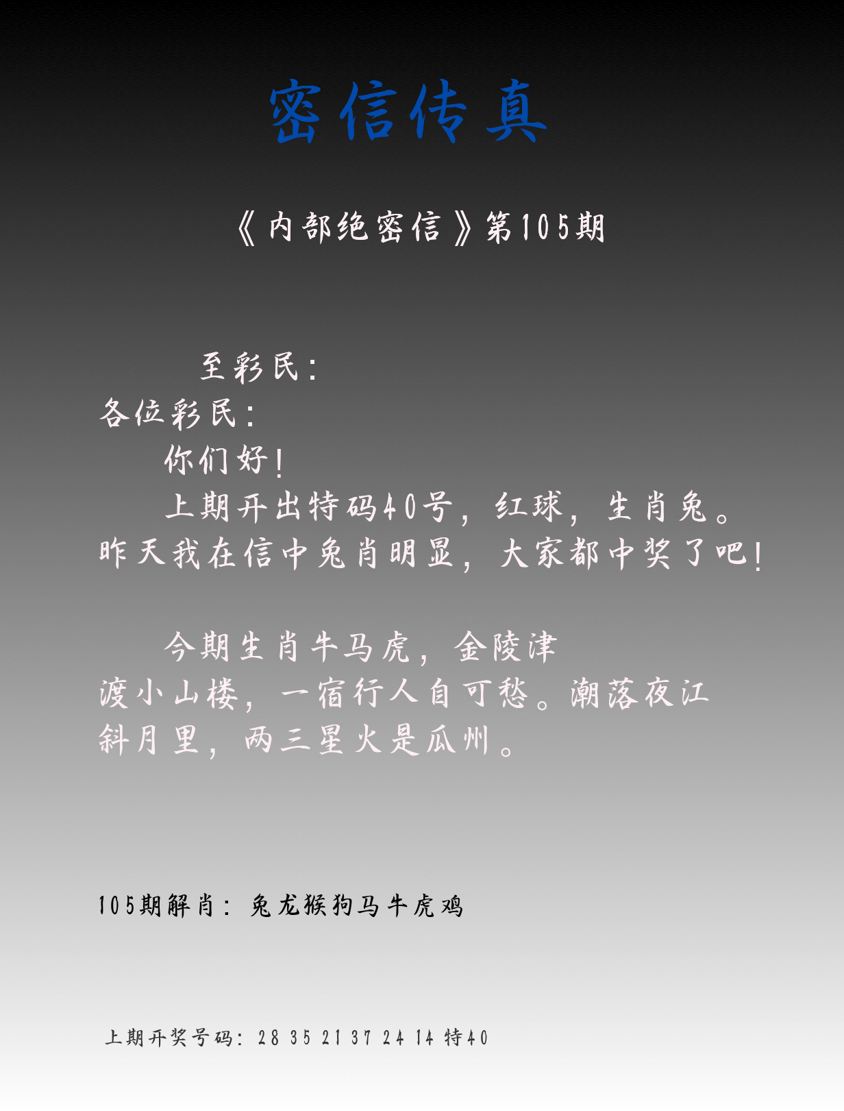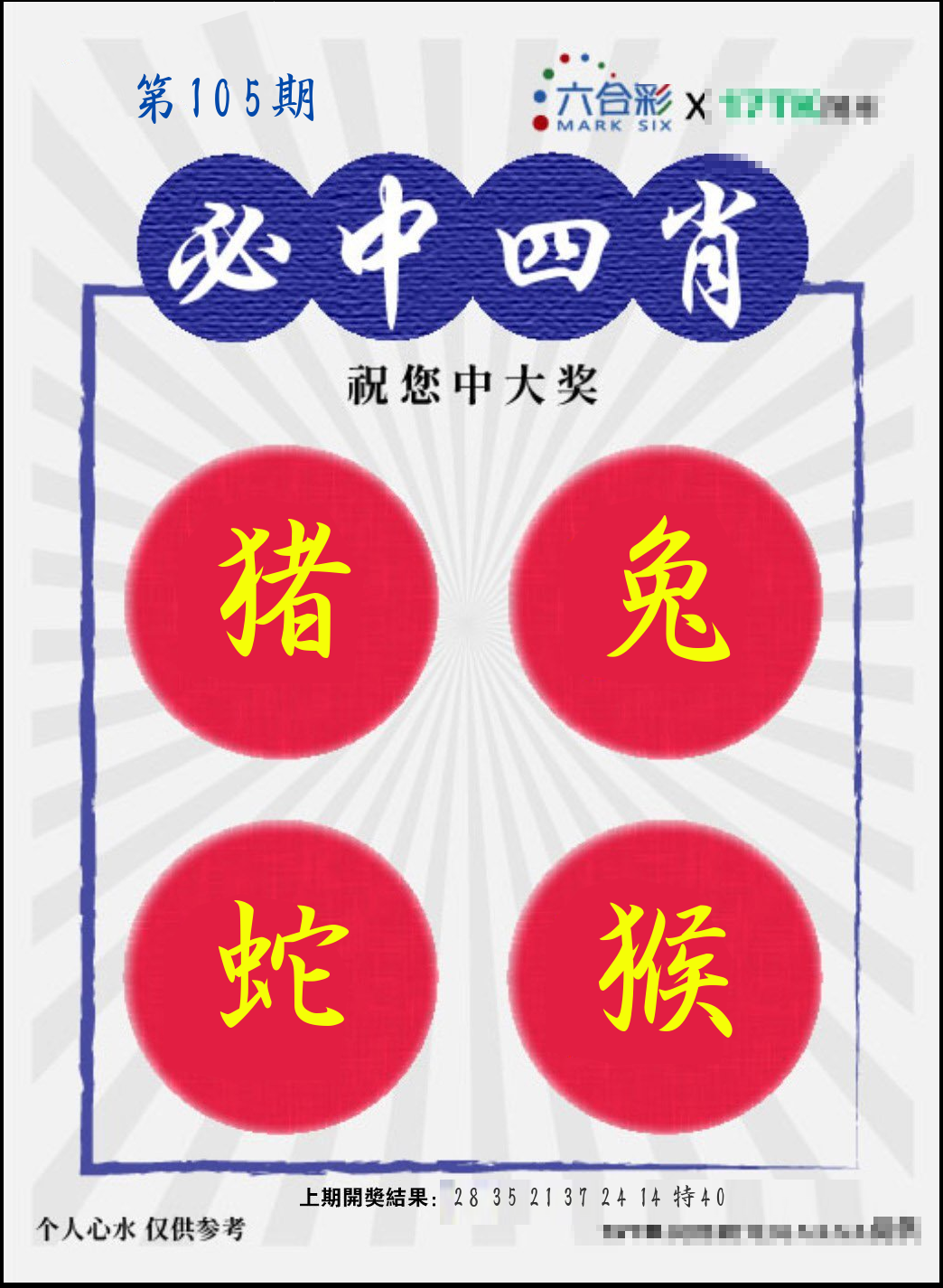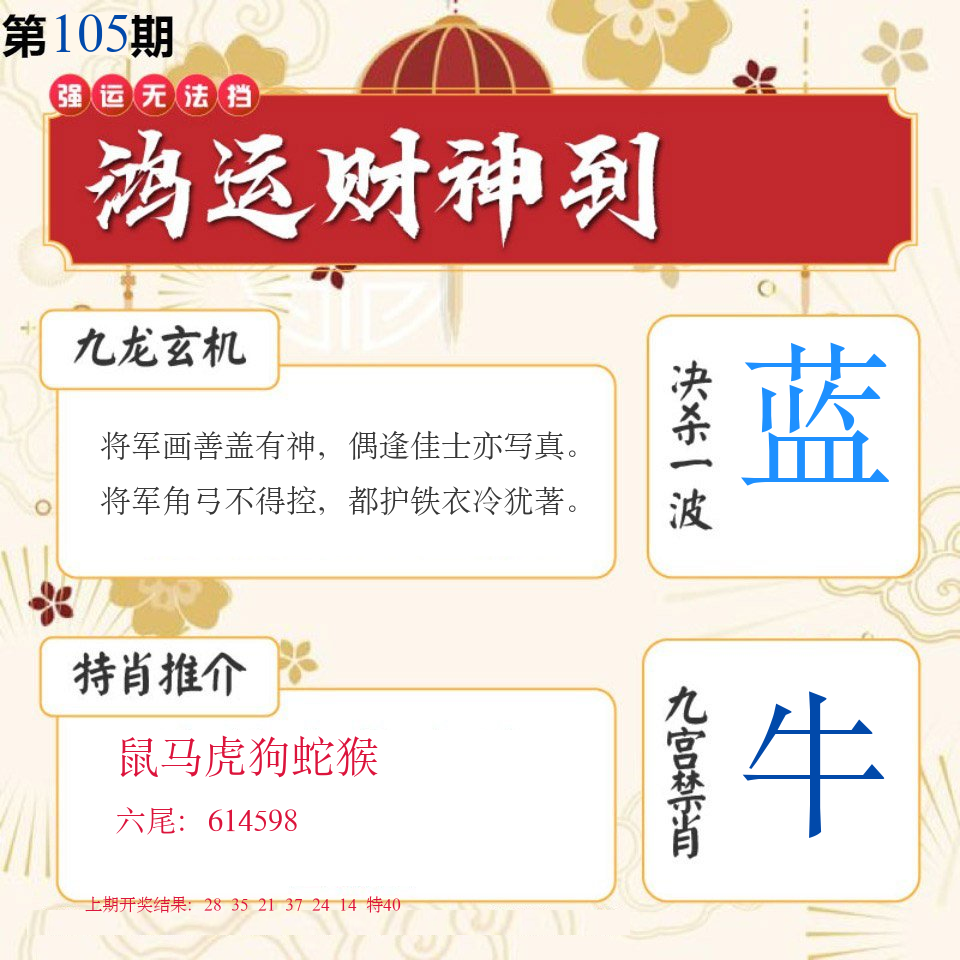 | 105期 | 鼠马兔狗猪鸡蛇 | ????? |