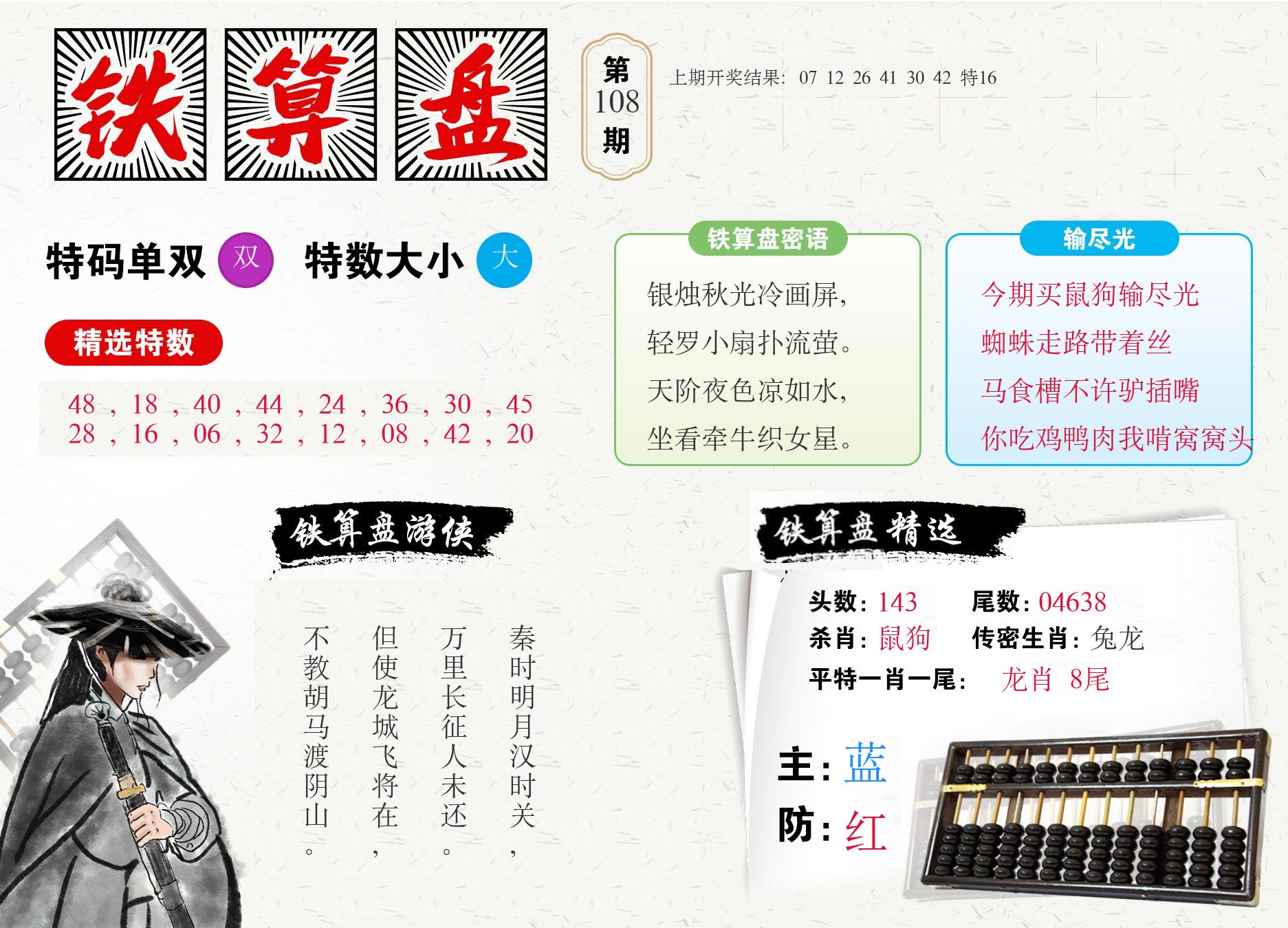 | 107期 | 兔猴鼠鸡牛虎蛇 | 16兔 |
