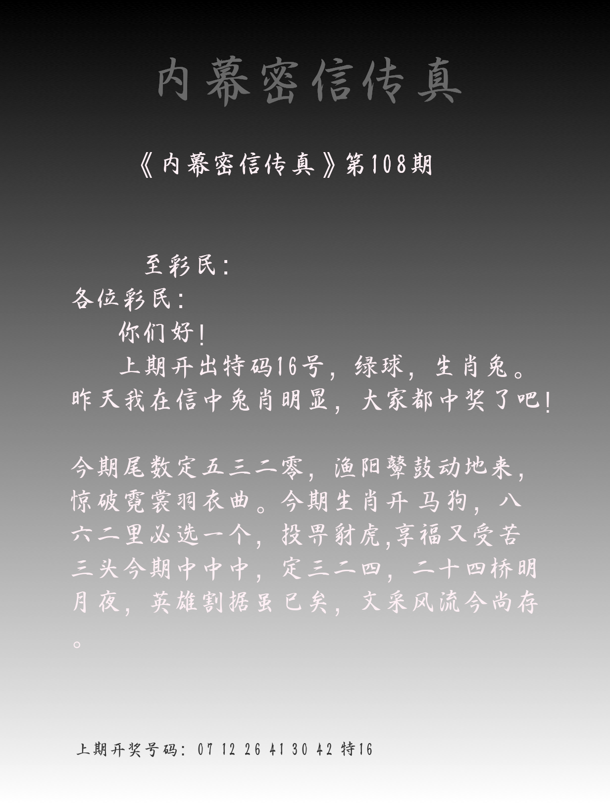 | 108期【牛马猪龙蛇猴鸡羊兔】开??????? |